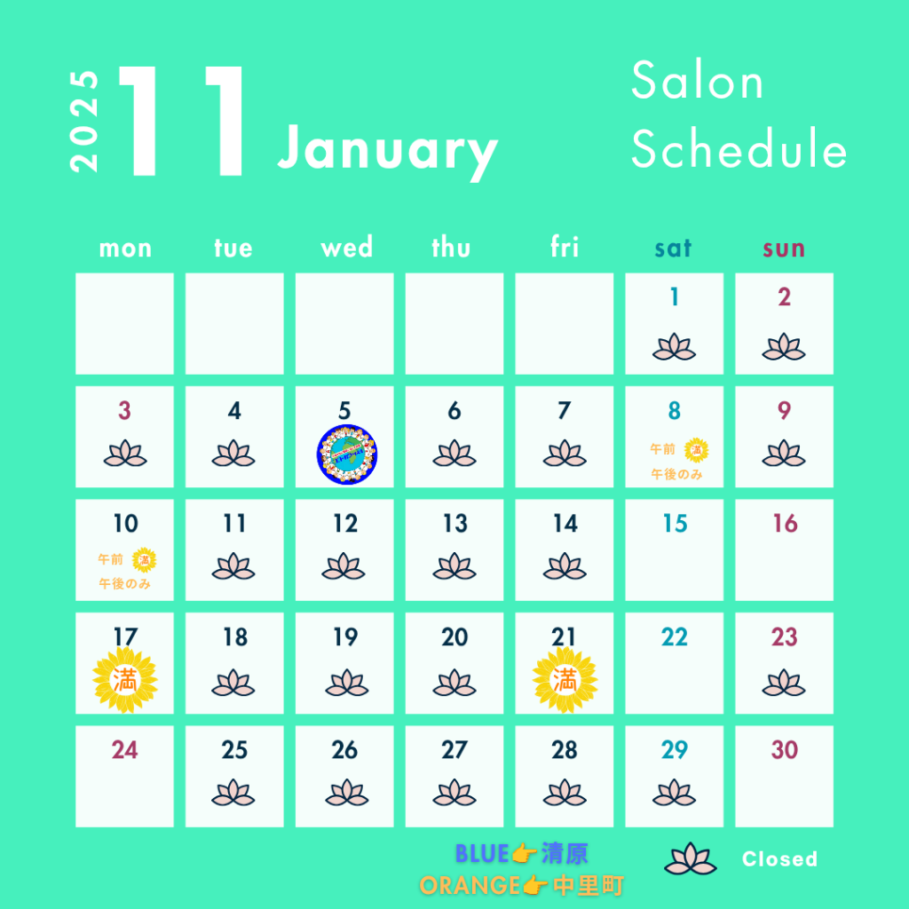 カレンダーの空欄は全ての時間帯ご予約可能となります
