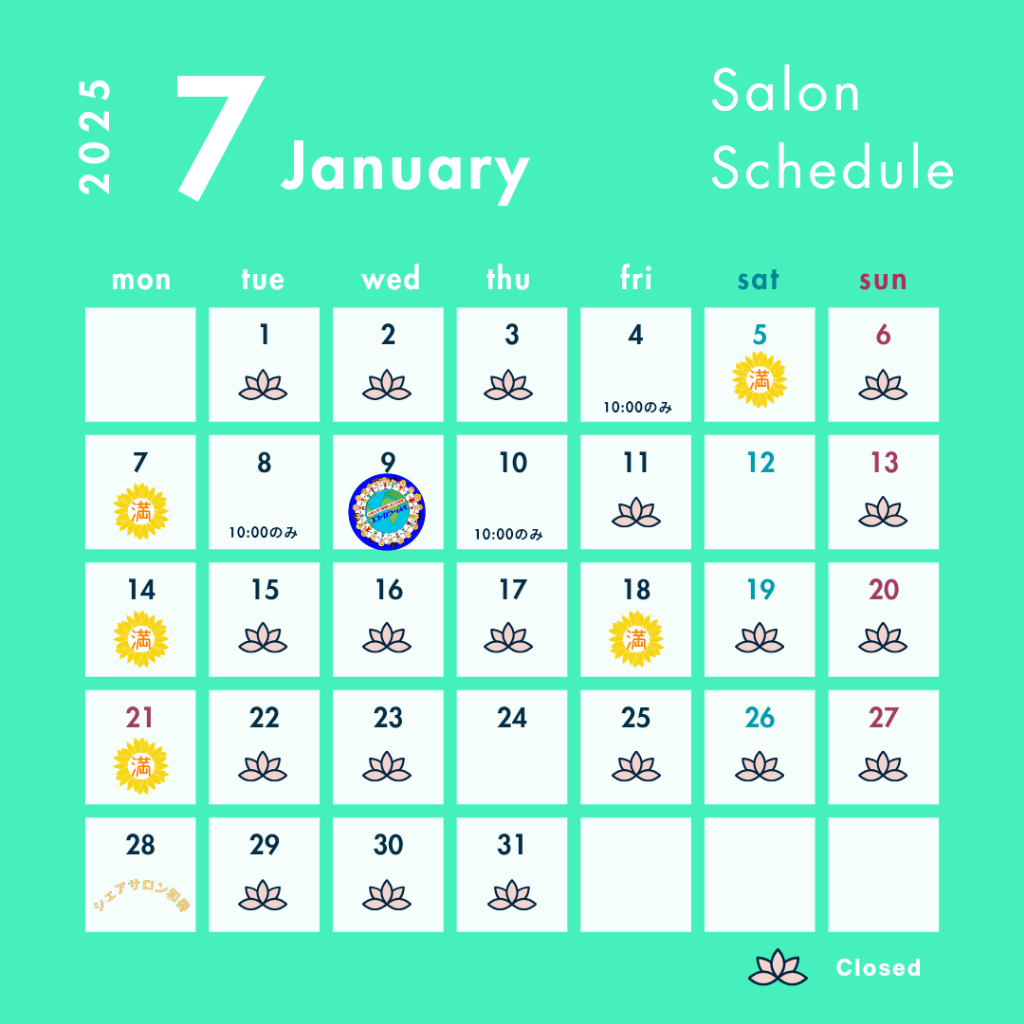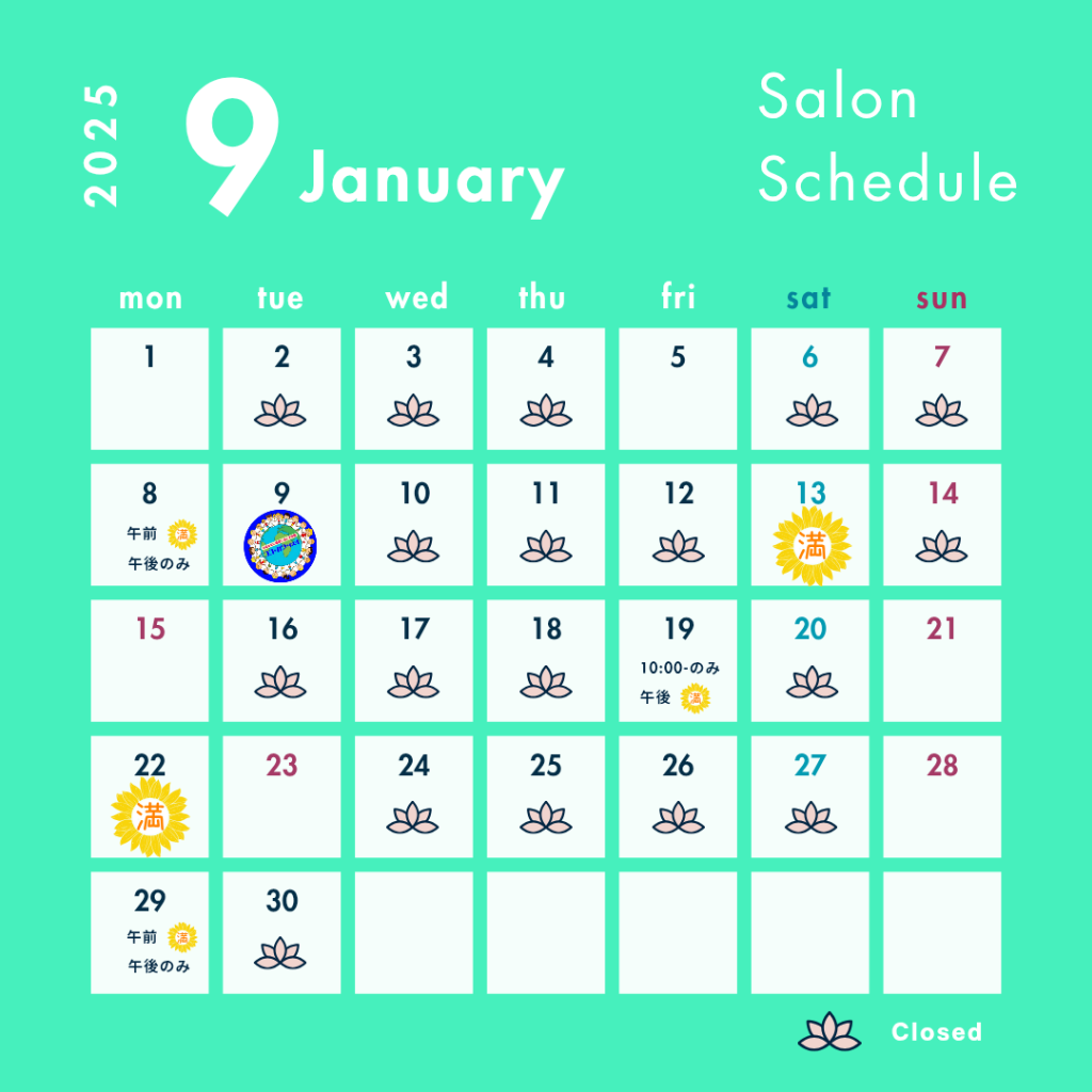 カレンダーの空欄は全ての時間帯ご予約可能となります