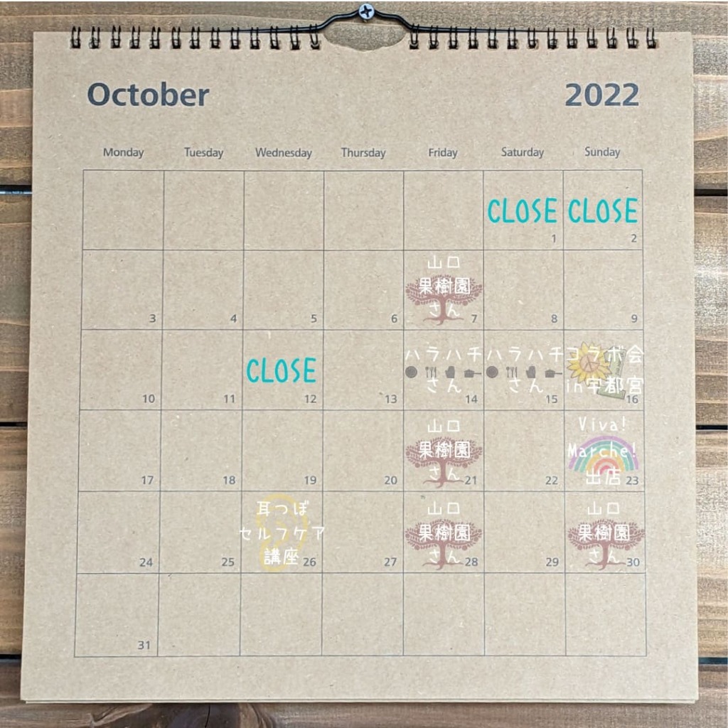 さて、今日現在の決まっている10月の予定です🌻