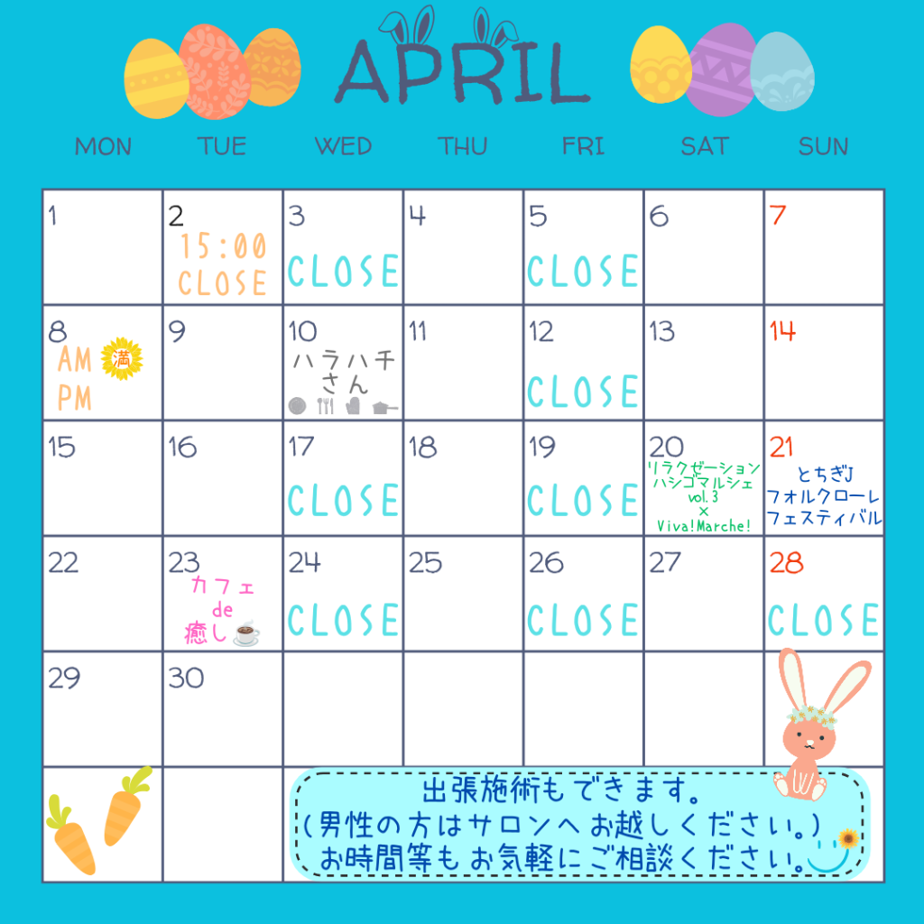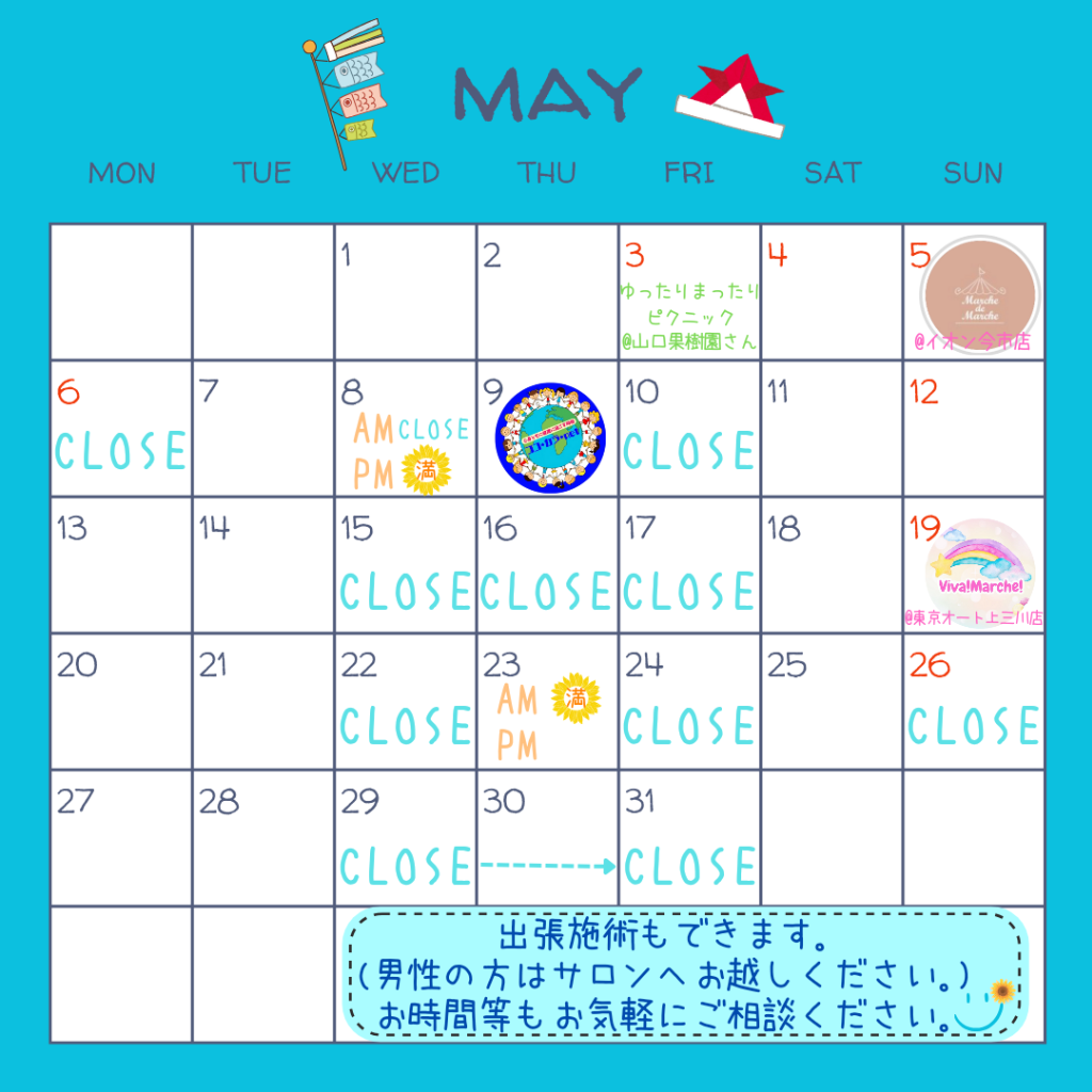 5月も水曜金曜お休みとなっていますが、時間によっては対応可能な場合もありますので、1度ご相談ください🍀